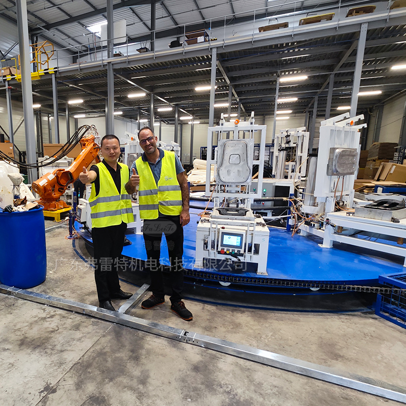 這是弗雷特生產(chǎn)的汽車座椅轉(zhuǎn)盤生產(chǎn)線,感應(yīng)機(jī)械臂澆注,自動(dòng)開合模具,效率高,生產(chǎn)簡(jiǎn)便。全自動(dòng)機(jī)械臂澆注,澆注準(zhǔn)確,發(fā)泡穩(wěn)定,生產(chǎn)效率高,機(jī)械臂能夠完成軌跡澆注的要求,簡(jiǎn)單操作,可以減輕員工的勞力。